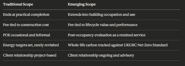 If your practice is connected to a building's performance data post-handover, questions around professional liability, PI insurance and appointment scope will need revisiting.