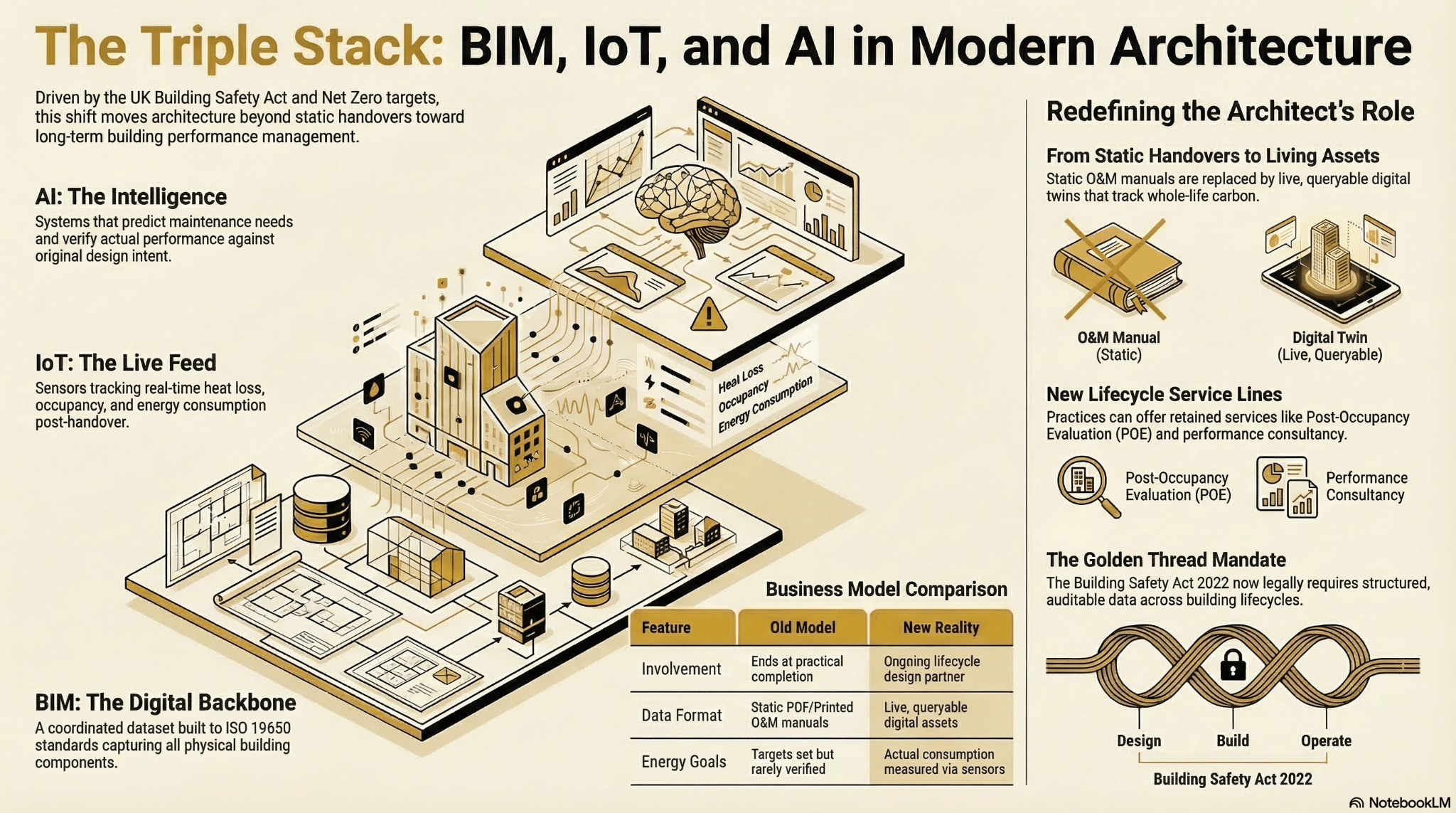 The Golden Thread obligation under the Building Safety Act (the requirement to maintain a continuous, accurate and accessible record of design information across a building's entire lifecycle) is making the triple stack increasingly hard to sidestep.